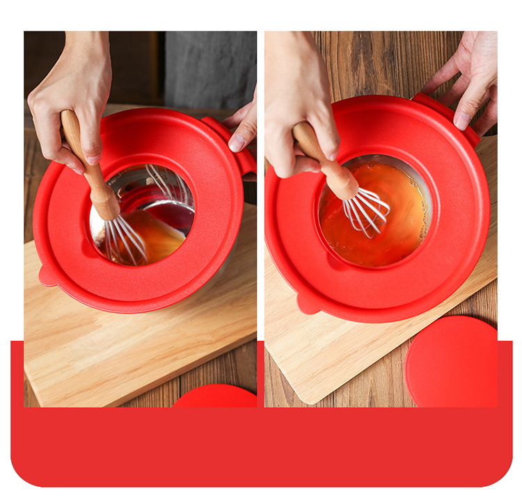 Crafted from high-quality stainless steel, this bowl features a non-slip silicone base that ensures stability while you mix. Available in a range of sizes from 16CM to 24CM, you'll find the perfect fit for any recipe. The unique design includes an ergonomic handle that makes pouring and tossing effortless, while the clear lid allows you to store your culinary creations with ease.